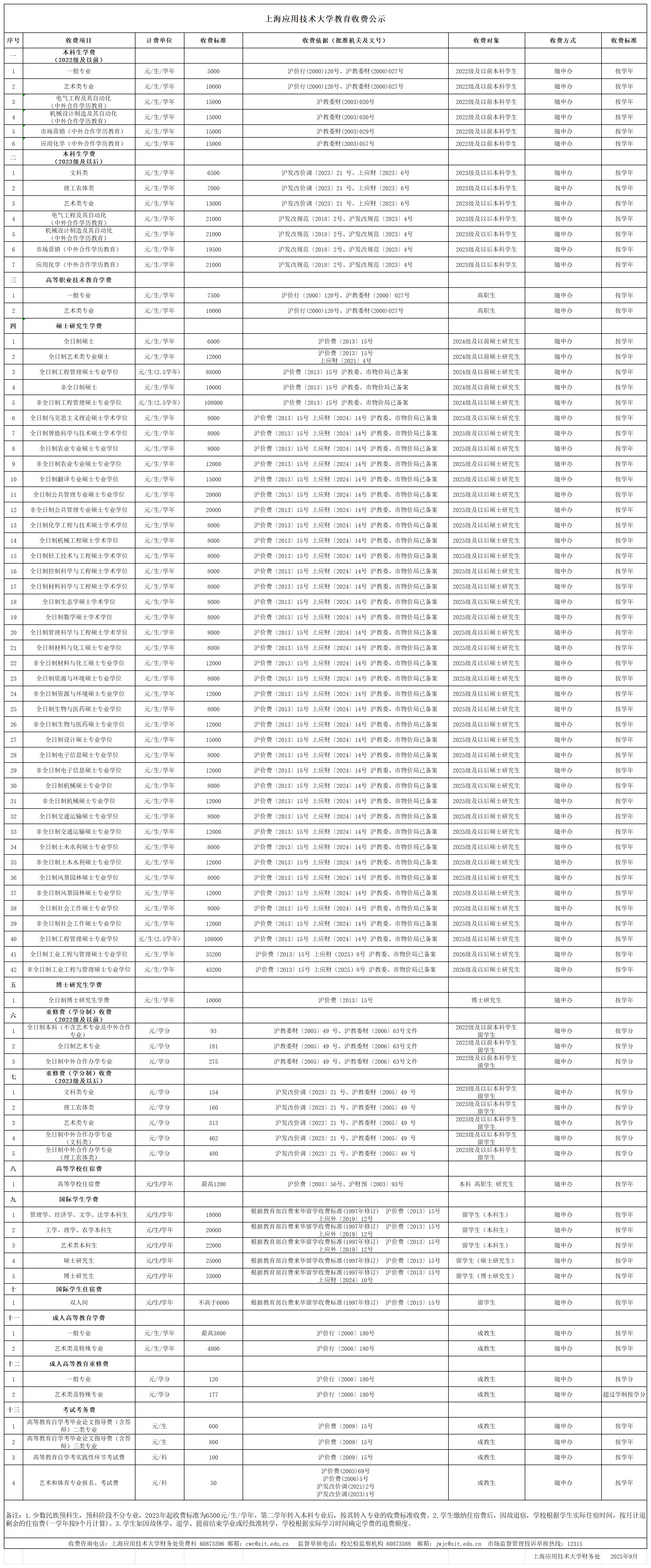 教育收费项目公示更新(2025)